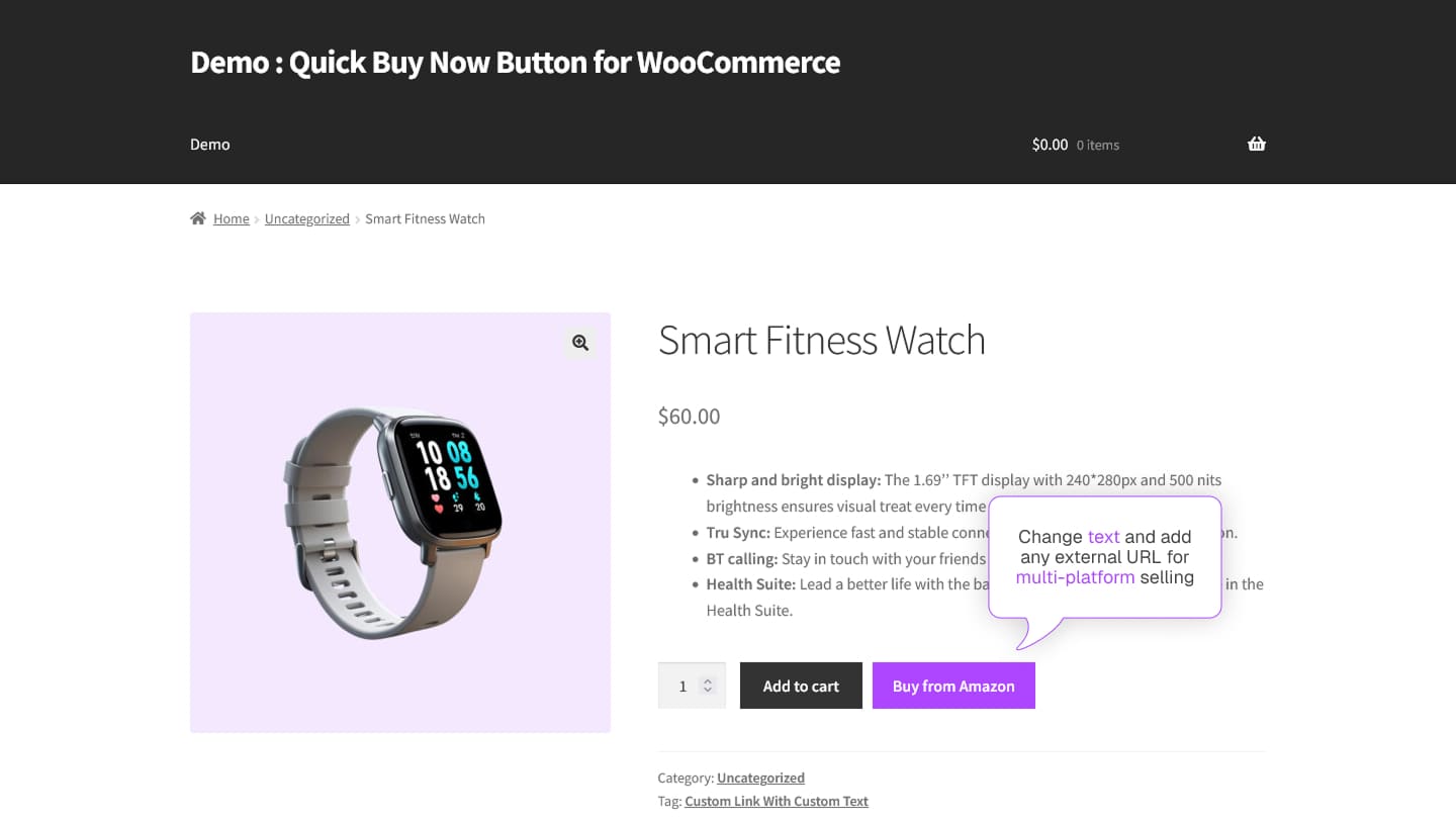 Supercharge your checkout process by allowing customers to skip the cart and go directly to checkout. Add custom Quick Buy Now buttons for specific products to enable purchases from external marketplaces like Amazon, eBay, or redirect to any custom URL for seamless multi-platform selling.